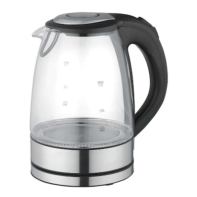 Mega Chef Glass/Stainless Steel Electric Tea Kettle, 1.7 ltr, Black/Silver (97096272M)