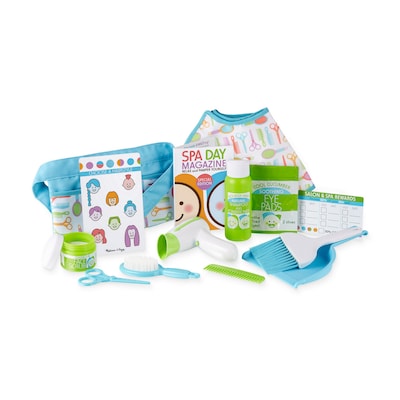 - 16-piece salon and spa play set with pretend play toy accessories for hair care and spa services (does not contain real cosmetics)