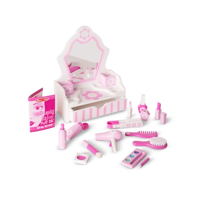 Melissa & Doug Wooden Beauty Salon Play Set with Vanity and Accessories (3026)