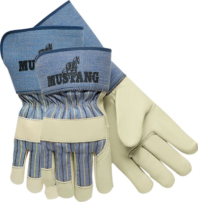 Memphis Gloves Mustang® X-Large palm glove in white color is made of cowhide leather with rubberized safety cuff offers wrist and arm protection. Glove features gunn pattern style for durability and flexibility.