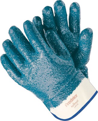 Memphis Gloves® Predator® Fully Coated Gloves, Nitrile, Lined Safety Cuff, Large, Blue, 12 Pair/Box