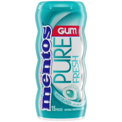 Enjoy the long lasting freshness of Mentos Pure Fresh Gum in Wintergreen. Available in a convenient on the go package in four flavor variations. Each package contains 15 pieces of Mentos Gum.