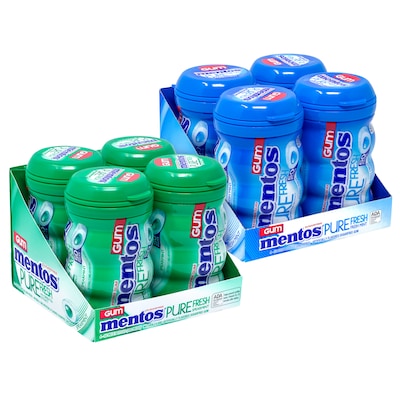 Enjoy the long lasting freshness of Mentos Pure Fresh Gum in Fresh Mint and Spearmint. Available in a convenient on the go package that's perfect for your desk or car. Each package contains 50 pieces of Mentos Gum.