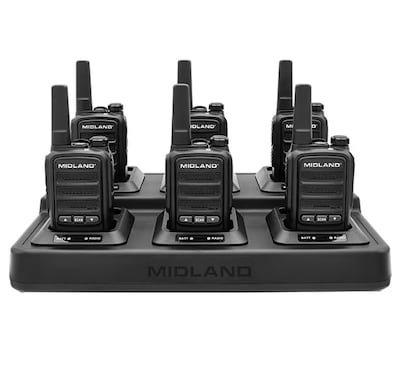 The Midland BR10X6 Heavy Duty License Free FRS Business Radio is designed with a durable die-cast metal frame for robustness in demanding work environments. It offers license-free operation, making communication hassle-free, and includes rechargeable battery packs and a dual slot desktop charger for convenience. The radio features 22 channels, concealed headsets for hands-free use, and a built-in flashlight for added functionality. Ideal for businesses like retail, hospitality, event management, and construction, this device promises reliable, high-quality communication, backed by Midland's reputation for excellence.