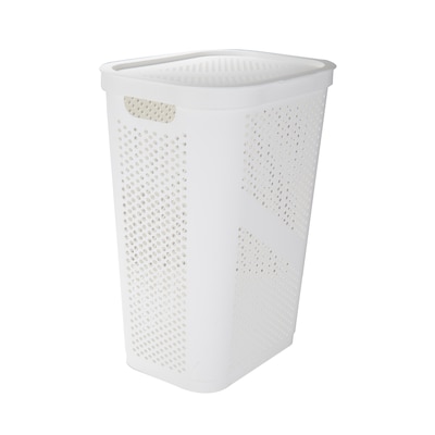 Keep your home tidy with this large laundry hamper. Not just for laundry, this spacious bin can handle a variety of storage needs. Beyond holding clothes, it can store plush toys, shoes, sweaters, blankets, linens, and even serve as garage storage for sports equipment or gardening tools.With it's hinged lid, this hamper ensures your laundry stays neat and out of sight, contributing to a clean and orderly bedroom or bathroom. This laundry hamper maximizes storage in minimal spaces and blends seamlessly into any home aesthetic, thanks to it's open grid design. It fits perfectly next to the washer and dryer, in a small bathroom, or tucked into a closet.This hamper is ready for use right out of the box, with the lid easily snapping into place. The durable construction holds up to 15kg/33lb of laundry, towels, or linens. For the best stability, avoid overfilling. Cleaning the lightweight, durable plastic hamper is a breeze—just wipe using a damp cloth or sponge.Enjoy a tidier, clutter-free space with this versatile laundry hamper!