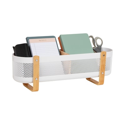Maximize your desk space and stay organized with the Mind Reader 2-Compartment Desktop Organizer. Featuring a sleek metal mesh design, this stylish and compact organizer helps reduce clutter while keeping essential items like notes, phones, tablets, and glasses within easy reach. The raised basket-style compartments offer practical storage without overwhelming your workspace, making it ideal for home offices, dorm rooms, or professional settings. Built from durable metal mesh and easy to maintain, the Mind Reader organizer blends seamlessly into any decor while boosting your productivity through simple, elegant organization.