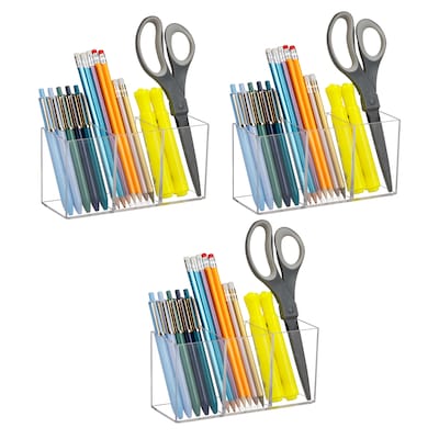 Mind Reader 3-Compartment Plastic Pen and Accessories Holder, Clear, 3/Pack (PENCOMP3-CLR)