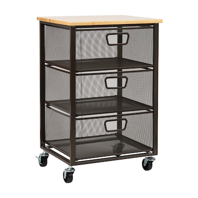 Mind Reader 3-Shelf Drawer Mobile Organizer Cart with Wheels, Black (3TMESHC-BLK)
