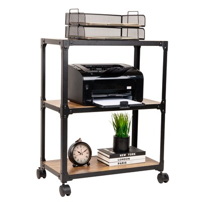 Multipurpose 3-Tier Rolling Cart for Office or Home Office Organization Add practical storage and modern style to your office or home workspace with the Mind Reader Multi Purpose Rolling Cart. Designed for flexibility, this three-tier mobile unit is perfect for organizing office supplies, printers, books, files, or tech accessories—keeping everything neatly within reach.The sturdy metal frame and durable MDF shelves support up to 55 lbs in total, providing reliable storage for daily use. Smooth omnidirectional wheels make it easy to roll the cart between workstations, conference areas, or storage zones, while two locking casters keep it securely in place during use.Whether you're organizing a shared office, outfitting a remote workstation, or creating an efficient supply station, this versatile cart offers a sleek, professional look that blends with any office décor.