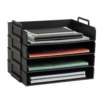 Mind Reader 4-Compartment Stackable Plastic Desk Tray, Black (DANSTACK4-BLK)