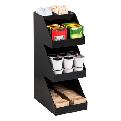 Revamp your coffee station with this versatile 3-tier organizer, designed to optimize and streamline your beverage space. This organizer maximizes counter or coffee station space, its lightweight and durable acrylic construction ensures longevity. Its non-slip feet keep the unit securely in place, and the shallow walls of each compartment ensure items remain contained.This ultimate beverage station organizer offers a comprehensive solution for any office breakroom or beverage area. It's perfect for creating a centralized spot for employees to gather and enjoy their drinks. The organizer features three vertical tiers, providing five separate compartments for single-serve pods, sugar packets, tea bags, creamers, stirrers, and utensils.Whether in a home, office, or hospitality setting, this organizer simplifies coffee and tea service areas. It's ideal for hotel lobbies, motel breakfast areas, kitchen counters, or office breakrooms. This organizer is an excellent choice for students and teachers in dorm rooms, common areas, or any setting where beverages and snacks are served. Use it as a kitchen countertop organizer to keep your coffee pods in order and your space clutter-free.
