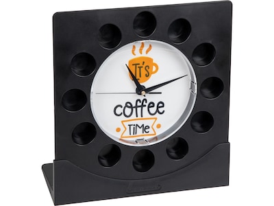 Coffee and time go hand in hand, and now you can have both with this Coffee Pod Holder and Clock. This innovative product combines functionality with style, serving as a clock and a coffee pod holder. With the capacity to hold up to 12 single-serve pods, you can easily grab your favorite flavor and be on your way. This coffee pod holder and clock is not only functional but also stylish, making it a great addition to any breakroom, kitchen, or hotel coffee bar. Guests and patrons can easily see the time and available coffee options, making it a convenient and practical solution for any coffee lover. With a single AA battery (not included), this clock will keep ticking while your favorite brew stays organized and within reach. This coffee pod holder and clock combo makes a thoughtful housewarming gift, or a practical present for a new neighbor or college student. Pair it with some of your favorite coffee pods to make it the ultimate coffee lovers' gift. Complete the look with other items from the Anchor Collection. Don't wait, it's always coffee o'clock with this handy gadget.