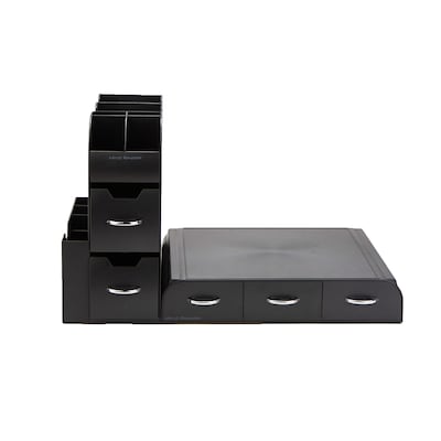 Create a beverage center for your home or office with this coffee and accessory station. Five slots let you organize sugar packets, stirrers, and coffee pods, while the rubber grippers keep this dispenser securely in place for safer use around hot beverages. This Mind Reader coffee station is made from black ABS plastic and features chrome handles for a contemporary look.