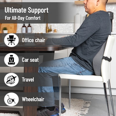 - Orthopedic Back Relief: Made with contoured memory foam, this cushion supports lumbar vertebrae and promotes spinal alignment. The memory foam has a layer of cooling gel padding to keep you cool and comfortable throughout the day. Perfect for office chairs, recliners, or car seats, it helps maintain the natural curve of your lower spine to alleviate pain and improve posture