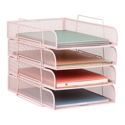 Keep your papers, folders, and supplies neatly organized with the Mind Reader Four-Tier Stackable Desktop Organizer. Designed for letter-size documents, this durable metal mesh system helps declutter desks and optimize workflow in any office, dorm, or home environment. Each tray can be used stacked together or placed separately to suit your space. With a modern design and no assembly required, this lightweight yet sturdy organizer is a smart solution for anyone who values tidy, accessible storage that looks great and works hard.