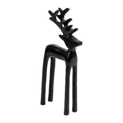 Add a touch of winter elegance to your space with this modern black metal reindeer figurine. Crafted from durable aluminum with a smooth matte finish, this 10.25-inch tall decorative piece blends rustic charm with contemporary style. Its sleek silhouette makes it perfect for holiday displays, mantel decor, or as a non-denominational accent that lasts all winter long. Whether you're decorating your home or gifting a loved one, this versatile reindeer complements any style—from modern to farmhouse—and brings warmth and joy to any celebration.