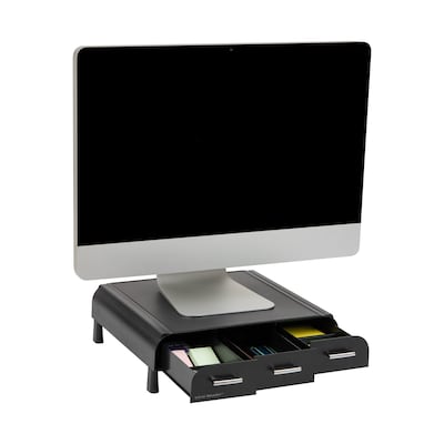 Mind Reader Monitor Stand and Desktop Organizer with 3 Storage Drawers, Black (MONSTA3D-BLK)