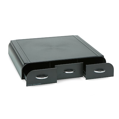 Mind Reader Anchor coffee pod storage drawer in black color has ABS plastic construction for added durability. Drawer measuring 2 3/4" x 13 1/2" x 13 1/4" features 3 organized drawers with chrome handles and is ideal for home or office use.