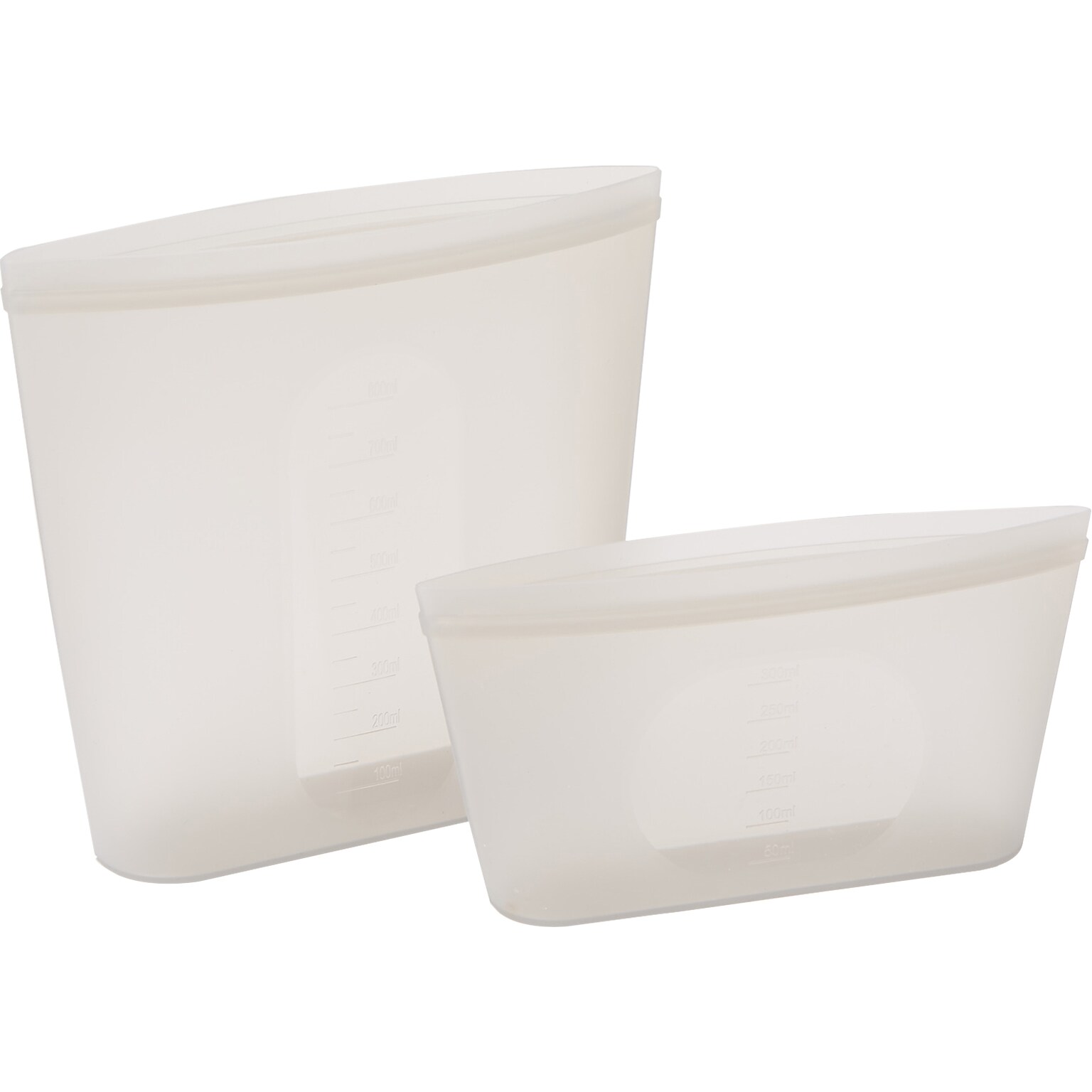 Clear bags with green easy-open tab are made of durable, long-lasting plastic