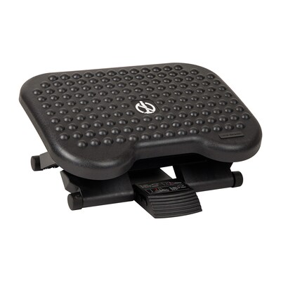 Experience all-day comfort with the Mind Reader Adjustable Ergonomic Footrest, designed to support better posture and reduce leg and back strain at your desk. This under-desk foot rest features a height-adjustable, tilting platform that encourages active sitting and improved circulation. The textured surface gently massages your feet, providing relief and preventing slippage. Whether you're working from home, at the office, or studying for long hours, the Mind Reader footrest delivers customizable support that helps reduce fatigue and boost focus. Lightweight and durable, it’s easy to reposition and ideal for any workspace.