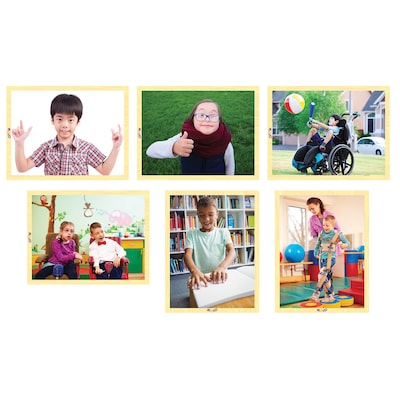 - This set of six wooden puzzles of real children walking, playing, and socializing are helpful for any classroom promoting inclusion and acceptance.