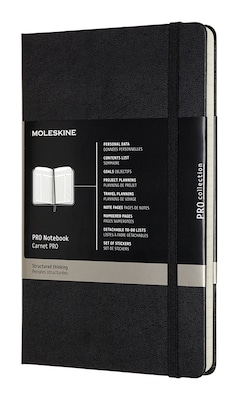 Keep track of notable events in this Moleskine Pro Collection professional large black notebook.