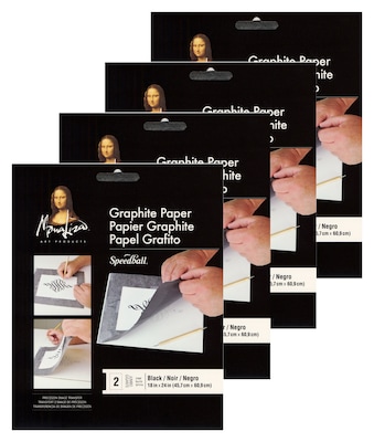 Graphite Paper by Mona Lisa provides an erasable, clean, and accurate design transfer onto a final artistic surface. Use this handy sheet for transferring onto canvas, wood, metal, paper, ceramics, and more. This black transfer paper covers a large area measuring 18 in. x 24 in. Its large format is perfect for outdoor yard ornaments, signs, or other large projects. Graphite Paper is thin and may be cut down to accommodate smaller images as well. Each sheet is folded and individually wrapped. Sold as a pack of 4.