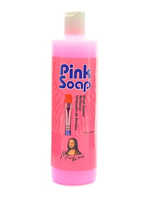 Cleans oil, acrylic, and watercolor paint from brushes, and also conditions and helps to reshape brushes. Lotionized, but leaves no greasy after-feel for cleaning hands. Mona Lisa pink soap has found many uses besides artists brushes, including the cleaning of jewelry, stones, stove tops, microwave ovens, and greasy skillets. Remove stains from clothing, upholstery, and carpets. Contains no chlorides, alkalis, phosphates, solvents, or alcohol.