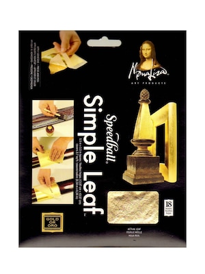 Simple Leaf is a micro-thin sheet of composition metal, packaged and separated by pages of tissue paper. Simple Leaf makes the leafing process fun and foolproof with no mess and no waste - just apply adhesive, stick, and peel.Simple Leaf works on a vari ety of surfaces and is acid free.Sheets measure 5 1/2 in. x 5 1/2 in. Each package contains 18 sheets.