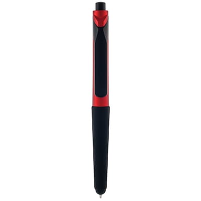 Monteverde® S-106 One touch click action ballpoint red pen with front stylus has conductive rubber on bottom and features smooth top that is retractable. Pen revoke back to barrel making no contact with screen and is sold as 2 per pack.