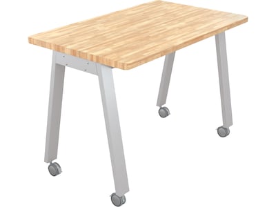 MooreCo Compass Makerspace 60" Table with Butcher Block, Beige/Platinum (91696-C-BUTCHER)