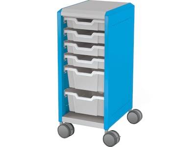 MooreCo Compass Mini H2 Mobile 6-Section Storage Cabinet, 36.13"H x 14.88"W x 19.13"D, Platinum/Blue Metal (B1A1E1C1X0)
