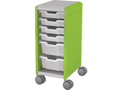 MooreCo Compass Mini H2 Mobile 6-Section Storage Cabinet, 36.13"H x 14.88"W x 19.13"D, Platinum/Green Metal (B1A1F1C1X0)