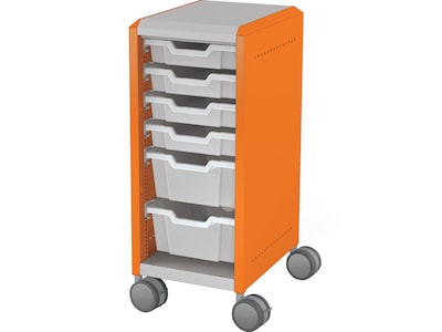 MooreCo Compass Mini H2 Mobile 6-Section Storage Cabinet, 36.13"H x 14.88"W x 19.13"D, Platinum/Orange Metal (B1A1H1C1X0)