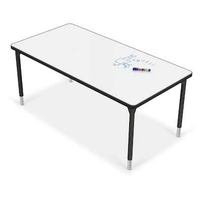 - 60x30 rectangle activity table with magnetic porcelain steel dry erase marker top.