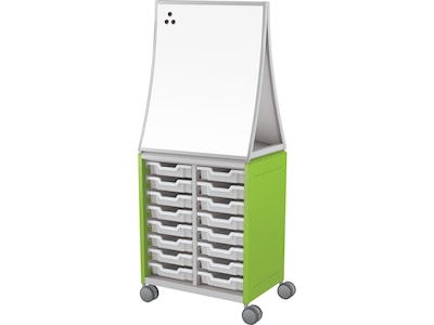 MooreCo Hierarchy Compass Midi H2 is a customizable storage solution that integrates with accessories that promote an active learning environment. Side panels are 18-gauge powder-coated steel reinforced with two 20-gauge 0.98" square steel tubes and two rows of 14 peg holes. Top panel, rear panel, and bottom panel are all 18-gauge platinum powder-coated steel. Four 3.94" casters are constructed from a reinforced plastic body with non-marking gray polyurethane wheels. Two casters are locking. Casters have a 0.5" x 1" stem. MooreCo Hierarchy Compass Midi H2 uses Gratnell's trays and the stop-safe runner system to allow for customization within the cabinet. Runners clip into the side panels and upright assemblies in a virtually unlimited amount of configurations. Ogee whiteboard is mounted at the cabinet's top.