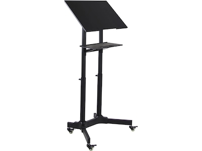 - This height adjustable rolling workstation can be used as a mobile laptop cart, portable podium, or presentation lectern