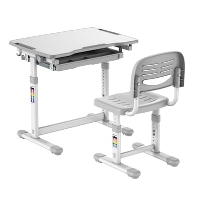 This Mount-It! kid's desk with chair is ergonomically designed for comfortable sitting and proper body positioning, which is important in maintaining good health even from a young age. Don't worry about having to buy multiple desks during the pre-school and elementary school ages. The height of this table and chair can be adjusted as your child grows. The tilting desktop supports better viewability and makes for an ideal workstation or study desk. Other desk features include a bag hook and storage drawer for supplies. Adjustable feet on the desk chair ensure a level work surface on almost any floor type, including wood or carpet. Designed for your child's safety - spacers ensure no pinched fingers your kids when lowering the table or chair. Whether used as a study desk for homework, a storage space or simply an area to relax, this desk set is perfect for all your little one's needs. Desk comes in three colors with a matching chair. Assembly instructions included.