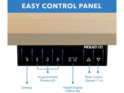 - Easy-to-use touch control panel with three memory settings allows you to effortlessly find your preferred sitting and standing heights