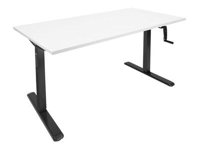 - Easy-to-use crank system adjusts the height of the desk from 30" from the ground up to 50"