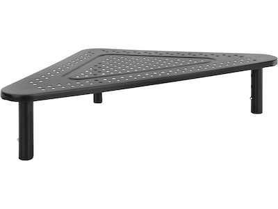 - EXTRA STORAGE AND SPACE SAVING DESIGN: This corner monitor stand is designed specifically to provide minimal space-saving storage while raising your screen. The extra storage underneath is perfect for storing away your keyboard, mouse, or other home office supplies.