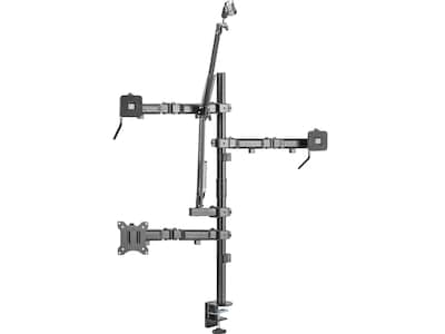 Lights, camera, action. No need for the DIY setups you've used in the past. The Mount-It! All-in-One studio single mount is a fully-loaded streaming set that can hold one monitor, video camera, ring light and has an extendable mic arm, making you look and sound like the professional you are. Each arm has a full range of motion so that you can raise, lower, tilt, and swivel it into the perfect position. The stainless steel construction and reinforced steel base protect your investment, keeping your devices secure at all times.
