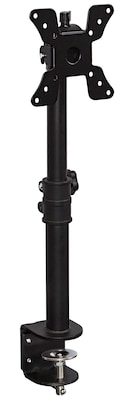 This computer monitor desk mount is height adjustable and can swivel and tilt to help position your monitor at the ideal position. Simple, yet elegant, this clamp-type mount will provide an ergonomic monitor installation. Its universal mounting plate ensures compatibility with virtually all the monitors in the market. High Quality MI-706 is one of Mount-It!’s most durable, single monitor mounts that will assist you with creating open desk space and functionality. This adjustable mount is perfect for anyone who wants to easily adjust their viewing height to an ergonomic level to help reduce neck, back and eye strain while opening up valuable desktop space. Features MI-706 made from heavy-duty steel and can carry up to 33 lbs. Black powder coat is elegant and scratch resistant. The sturdy C-clamp base allows you to conveniently attach it to any desk to maximize your work space, no need to drill holes. The heavy-duty C-clamp is adjustable and will fit desk thickness of up to 2" . MI-707 offers you the versatility of swivel your monitor 360 degrees and tilting it up to 12 degrees to provide you with the perfect ergonomic comfort level in any position. It also, comes with all of the necessary hardware and a manual for an easy installation. The mount height can be adjusted from 12" to 17" from the desk surface to the top of the mount. Compatibility MI-706 fits most flat screen monitor from 13" to 30" with the standard VESA pattern of 50x50, 75x75 and 100x100mm. To verify the VESA pattern of your monitor, locate the bolt holes behind it and verify the spacing. The standard pattern is approximately 2" x2" , 3" x3" or 4" x4" .