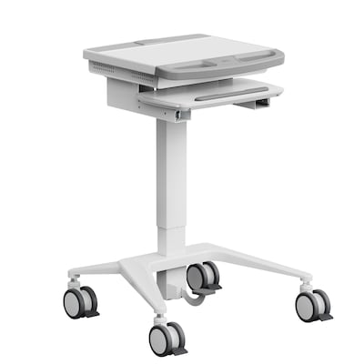 - Rolling medical laptop cart with convenient pneumatic height adjustment from 31.5" to 45.3" via foot pedal