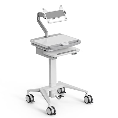 - This mobile medical cart includes a premium laptop mount on a full motion spring arm with height adjustment, screen rotation, swivel, and tilt functions