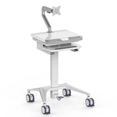 Mount-It! MedHub Mobile Medical Cart Workstation with Spring Arm Monitor Mount and Locking Caster Wheels, White/Grey (MI-16016)