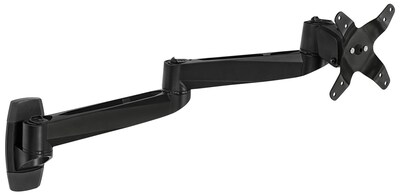 This single monitor wall mount features a full motion arm for smooth and versatile monitor adjustments. Adjust the height, tilt, swivel and rotation of the monitor to find the perfect placement. Mounting to the wall not only raises your monitor to eye level for a healthier way to work, but it maximizes office and desk space. This premium monitor wall mount is fully TAA (Trade Agreements Act) compliant and is suited for purchase by the U.S. government. It is a modular monitor mount, meaning it is fully customizable with the ability to add, remove, shorten or lengthen the monitor-mounting arm, which allows an organization to develop cost-effective, tailored solutions for their employees’ needs. The easy to install wall mount requires only a single stud for installation making it a quick addition to any workspace. The arm features a cable management port to hide and organize cables for a clean look. Fits monitors measuring in size up to 32” and can hold up to 19.8lbs.