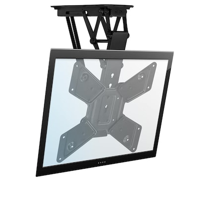 Flip your TV up and down with the motorized remote control ceiling mount! You can clear up space in your room and store your TV out of the way with this mount. Works with all TVs with standard VESA patterns of 200x200mm, 400x200mm, 300x300mm, or 400x400mm. Fits monitors from 23 to 55 inches. Has a 66 lbs. weight capacity.
