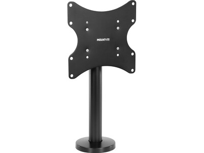 The Mount-It! bolt-down stand is made of heavy-duty steel for strength and stability. Perfect for either flat or curved screens, and the swivel feature allows you to find the perfect viewing angle. Keep kids and pets safe from knocking over your TV by securely mounting it to your dresser, desk, or other hard surfaces with the included hardware. The double-lock system provides stability for your screen, and the mount can hold larger TVs up to 110 lbs. Cable management system hides unwanted cords.