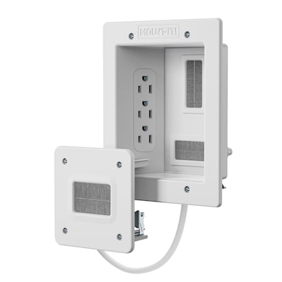 The In-Wall TV Cable Concealer with Recessed Power provides a sleek, clutter-free entertainment space. It features a triple outlet, pre-wired 9ft power cord, and an additional brush pass-through for easy cable management. ETL certified for safety, it includes all tools for a quick installation, making it an ideal solution for hiding unsightly cables behind the wall while powering up to three devices.